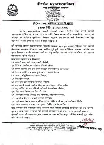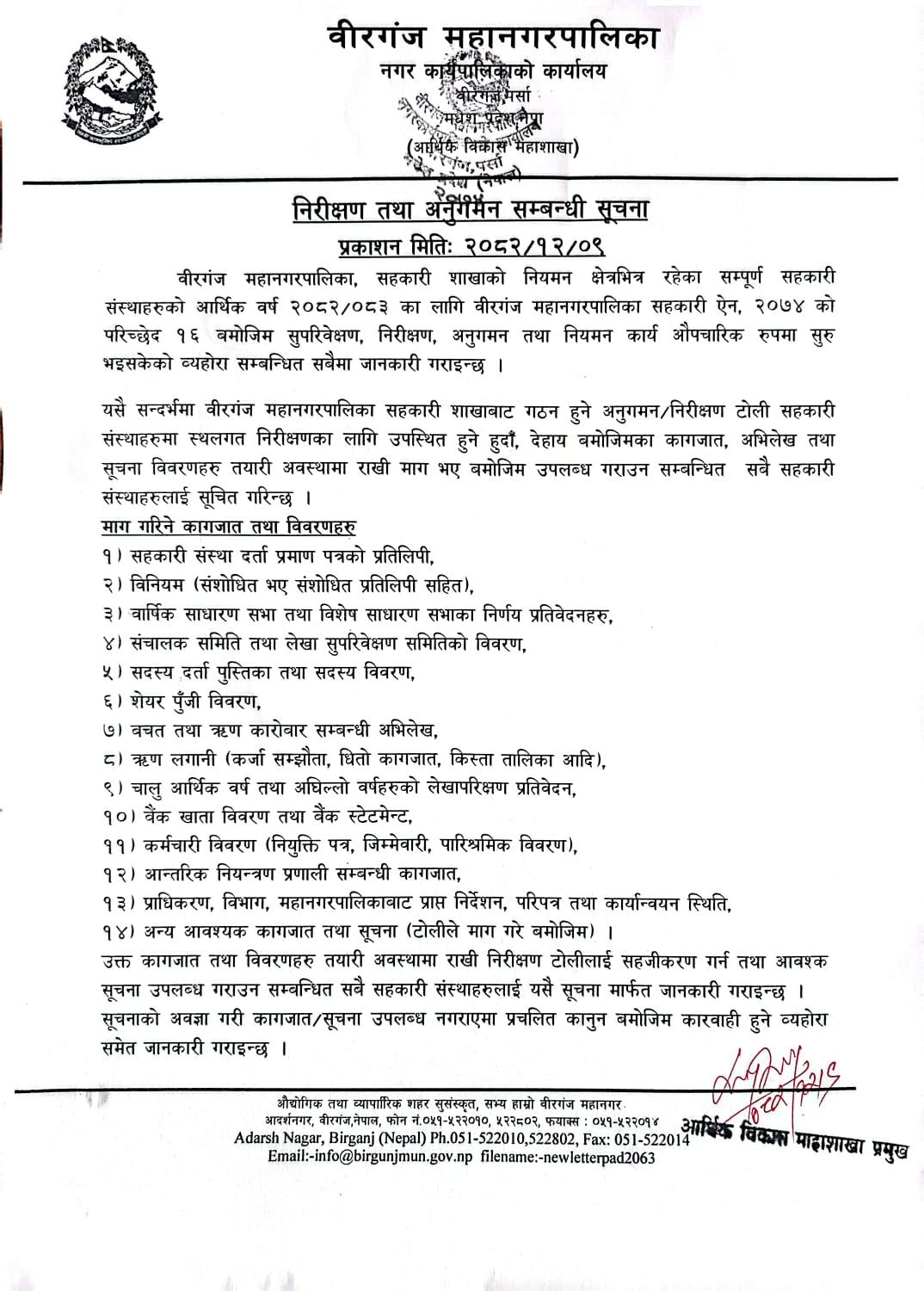 निरीक्षण तथा अनुगमन सम्बन्धी सूचना ।