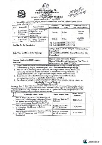 बोलपत्र आह्वान 2082/086-07, 17 (Re)