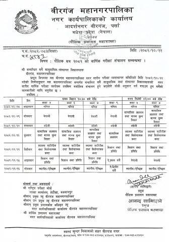 शैक्षिक सत्र २०८२ को वार्षिक परीक्षा सञ्चालन सम्बन्धी सूचना ।