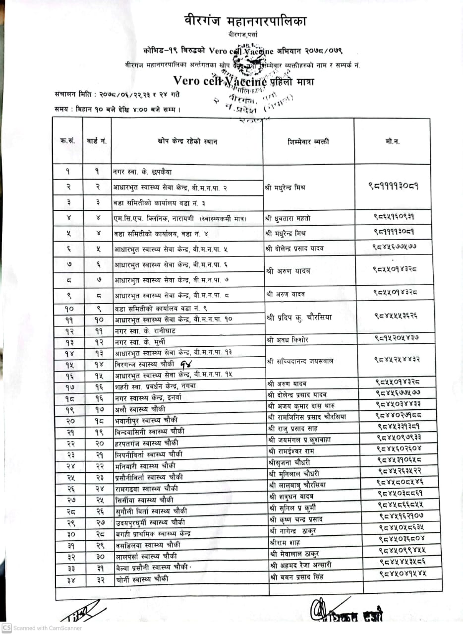 » Verocell vaccine खोप संचालन सम्बन्धमा।