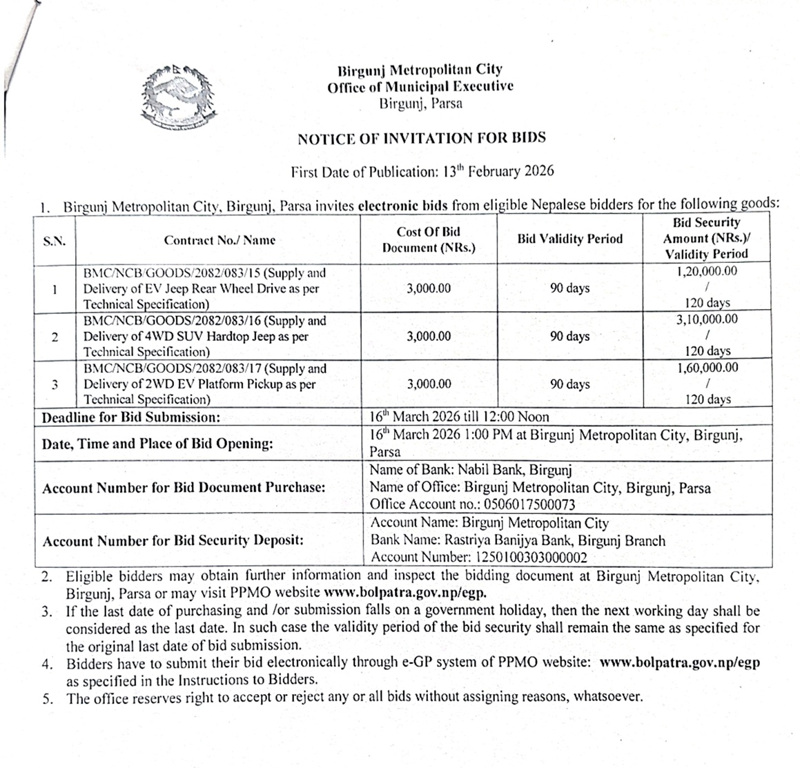 सार्वजनिक खरिद/बोलपत्र सूचना