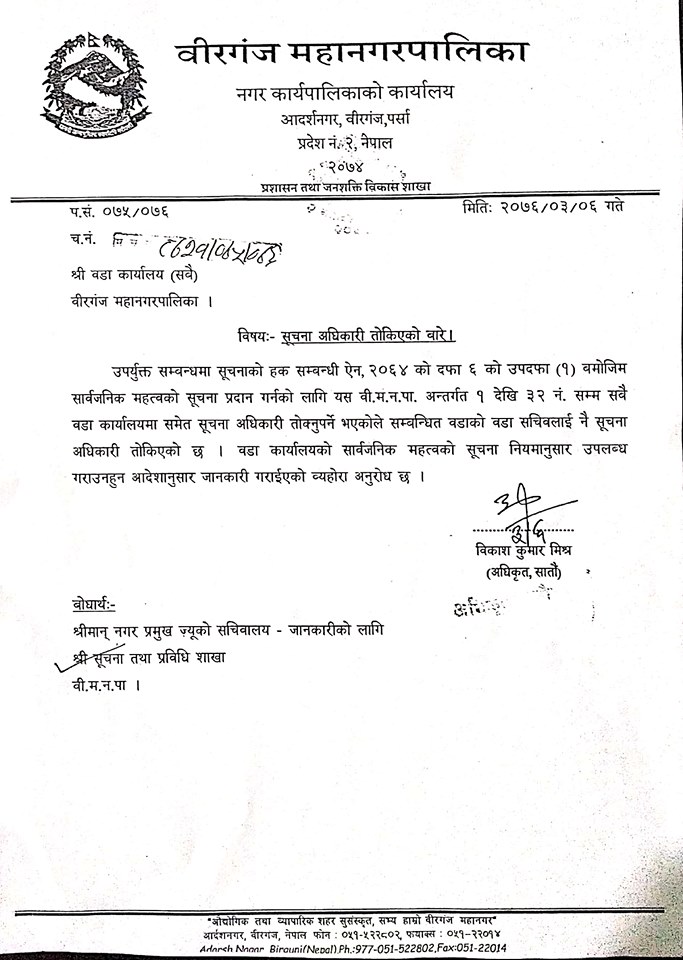 » वार्डका वडा सचिव नै सूचना अधिकारी तोकिएको बारे ।